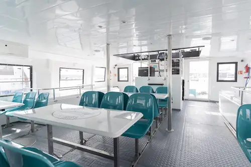 Este ferry es perfecto para excursiones marítimas, eventos, celebraciones o simplemente para disfrutar de la costa desde otra perspectiva. Su gran capacidad lo convierte en una opción ideal para grupos grandes que buscan una actividad diferente, relajada y con todas las comodidades necesarias a bordo.
